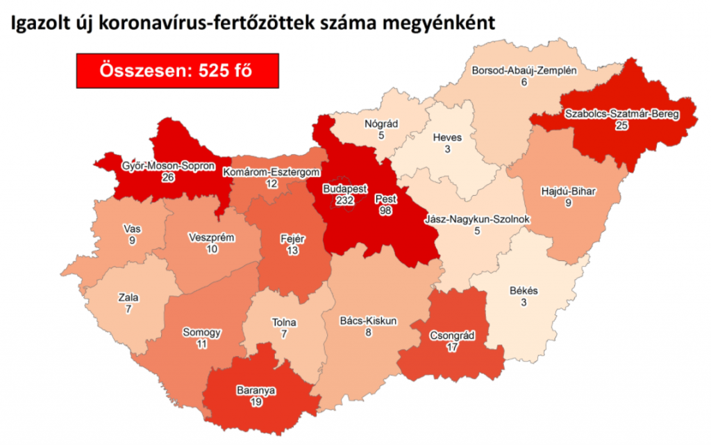 525-re nőtt a hazánkban beazonosított fertőzöttek száma és elhunyt négy krónikus betegséggel küzdő idős beteg. Az elhunytak száma ezzel 20 főre nőtt, de 40 főre emelkedett a gyógyultak száma is. Csongrád megyében 17 regisztrált koronavírus-fertőzött van.