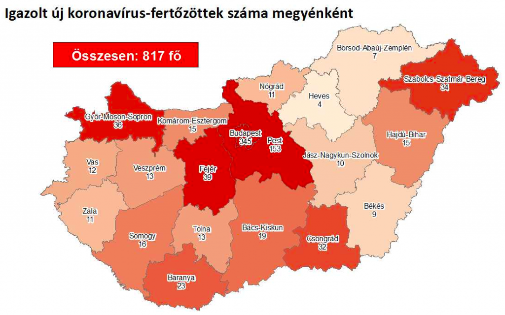 Kedd reggel így festett a legfertőzöttebb megyék listája: