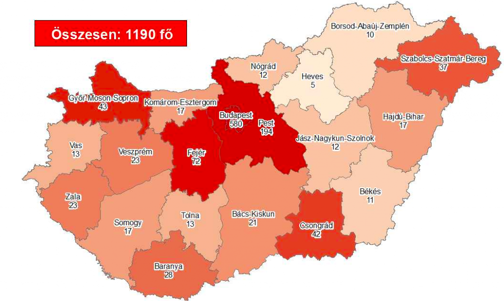Koronavírus: 11 újabb áldozat Magyarországon, 1190 fertőzött, Csongrád megyei adatok