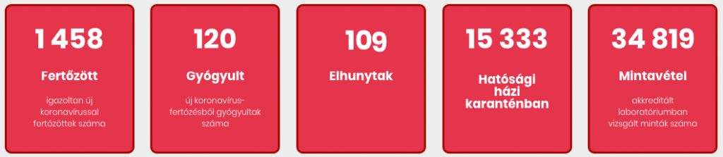 1458 főre nőtt a Magyarországon, 47-re a Csongrád megyében beazonosított fertőzöttek száma ma reggelre a Nemzeti Népegészségügyi Központ statisztikái szerint. Elhunyt újabb 10 idős, krónikus beteg, ezzel 109 főre emelkedett az áldozatok száma.