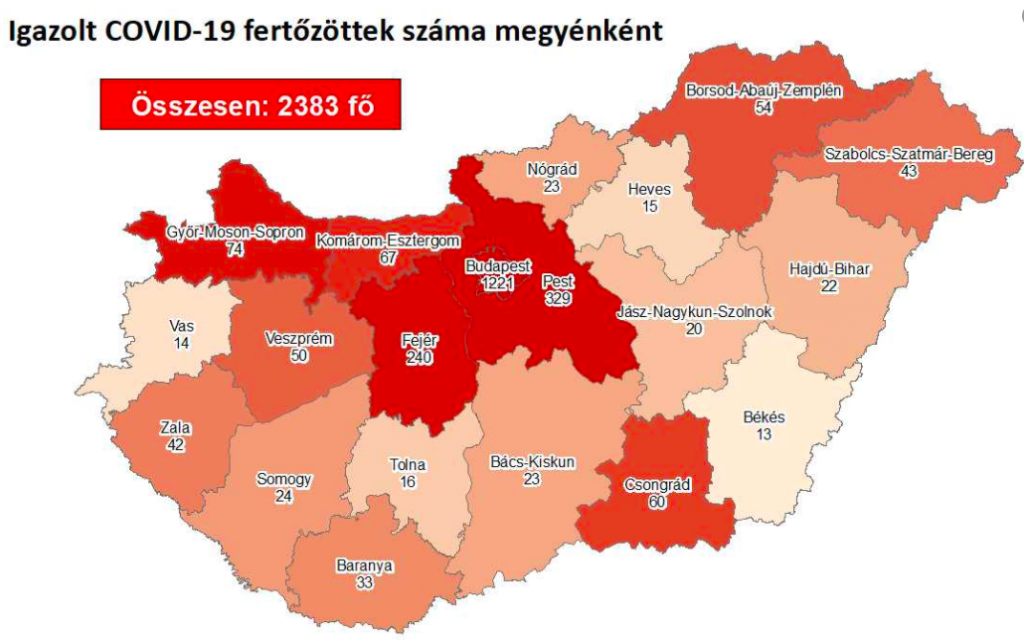 Koronavírus: 60 fertőzött Csongrád megyében, 2383 az országban, 250 halálos áldozat