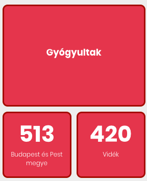 A járvány kezdete óta 10.356 magyart helyeztek hatósági házi karanténba, gyógyultan eddig 933-an távoztak a kórházból. Az aktív fertőzöttek 62%-a, az elhunytak 79%-a, a gyógyultak 54%-a budapesti vagy Pest megyei, számuk összesen 1917. Jelenleg 812 koronavírusos beteget ápolnak kórházban és 50-en vannak lélegeztetőgépen. 98-ra nőtt az idősotthonokban koronavírus-fertőzéssel elhunyt gondozottak száma, ebből 42 a Pesti úti idősotthon lakója.