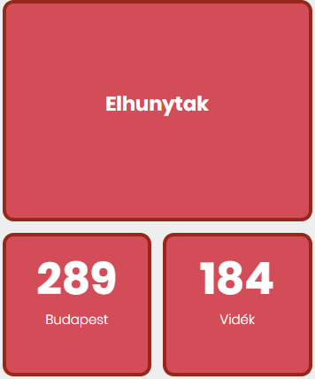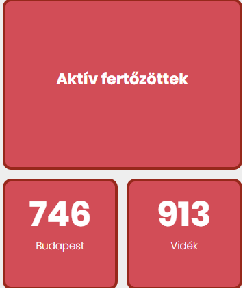 Az aktív fertőzöttek 45%-a , az elhunytak 61%-a, a gyógyultak 46%-a budapesti. Az aktív fertőzöttek harmada, 510 fő igényel kórházi kezelést, közülük 27-en vannak lélegeztetőgépen.
