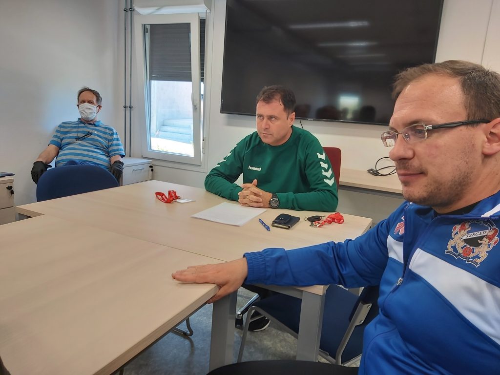 Az utánpótlásban dolgozó szakembereknek tartott értekezletet ma Halász László, a Szeged-Csanád Grosics Akadémia utánpótlásának szakmai vezetője. A megbeszélésen dr. Thurzó Balázs, csapatorvos és Őze Tibor, szakmai tanácsadó is részt vett.