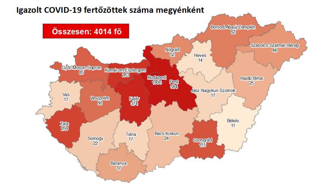 Fertőzöttek száma, országosan: 4014 (változás +6) fő