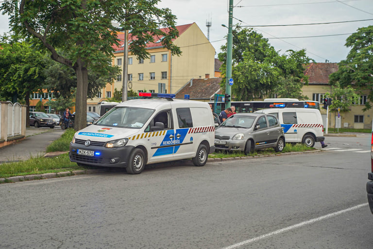 Kedden ugyanez a tendencia folytatódott: kora délután a Budapesti körút és a József Attila sugárút kereszteződésében tört össze két autó, fél órával később a Brüsszeli körút – József Attila találkozásánál. Személyi sérülés egyik helyen sem történt, a helyszínelés mindkét esetben rendkívül gyorsan lement: