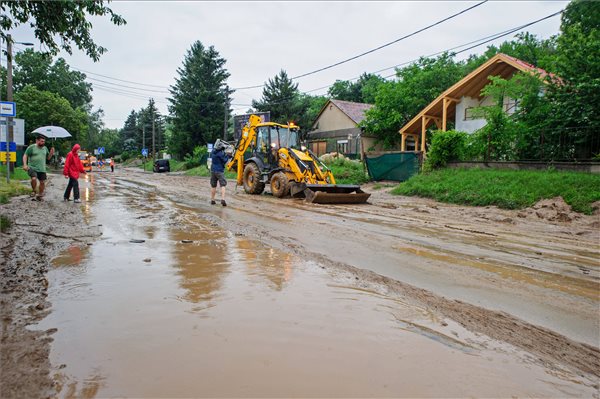Az alábbi MTI fotók Pilisborosjenőről érkeztek, a Pest megyei községben a lezúduló esővíz egy mezőgazdasági területről a földet, valamint az útburkolatot elsodorva elöntötte és járhatatlanná tette a 10-es főút egy szakaszát: