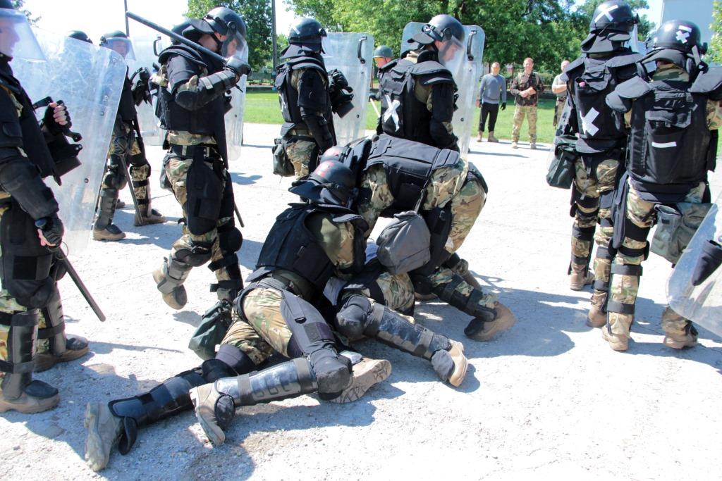 A csoportos foglalkozásokat követően a kontingens manőver századai megkezdték az egyik legfontosabb feladatuknak számító tömegkezelési eljárások (Crowd and Riot Control – CRC) begyakorlását. A több héten keresztül tartó foglalkozások az egyéni technikák begyakorlásával kezdődtek, majd a század szintű alakzatban történő mozgások és az elsajátított tudás tényleges alkalmazásával értek véget. A kötelék gyakorlások során a békés „tömeg” szerepét játszó ellenerő fokozatosan vált egyre „ingerültebbé”, így biztosítva az egyre nehezebb feladatokat.