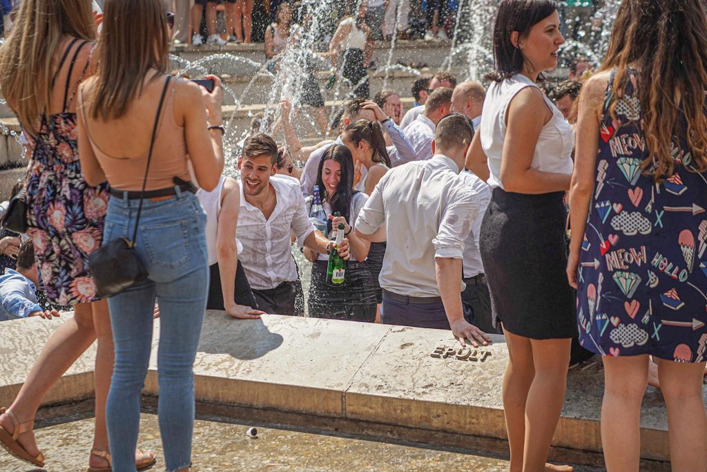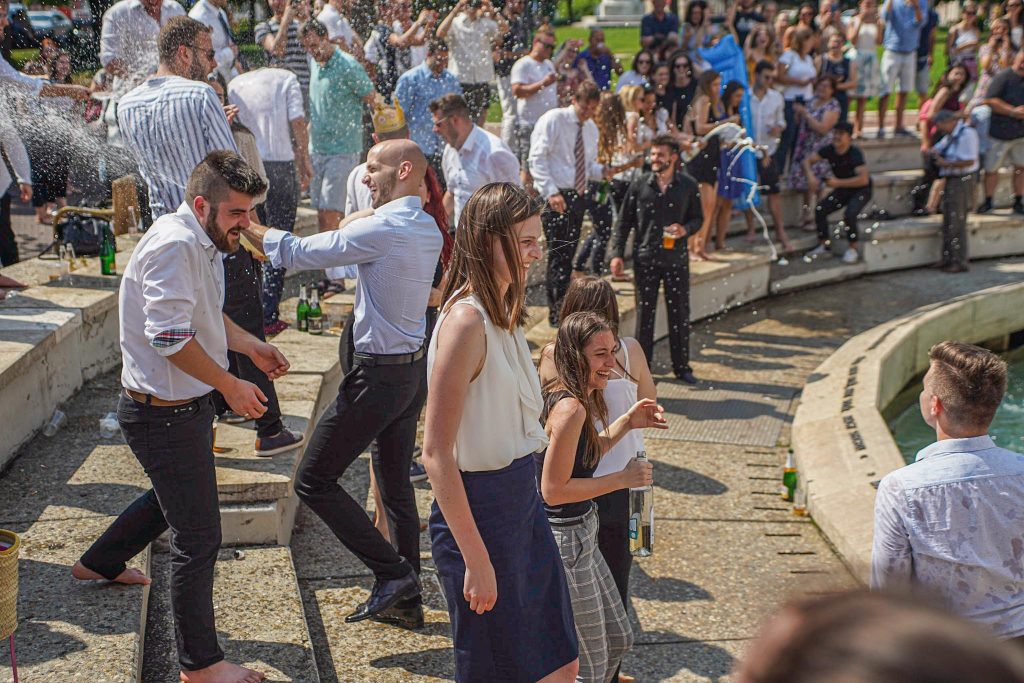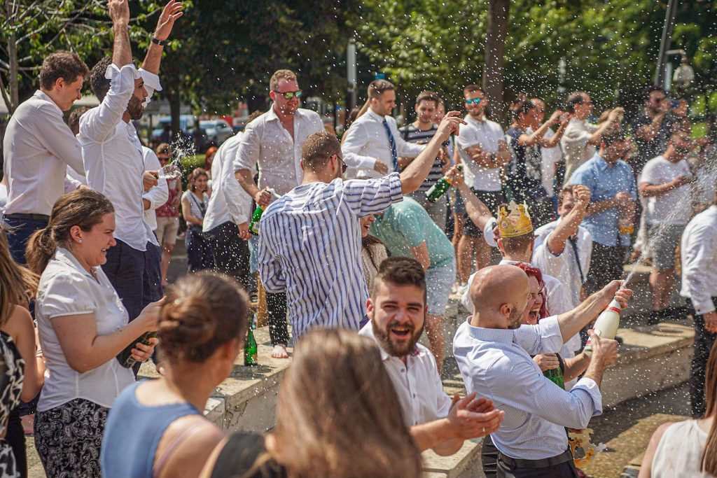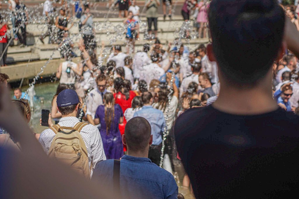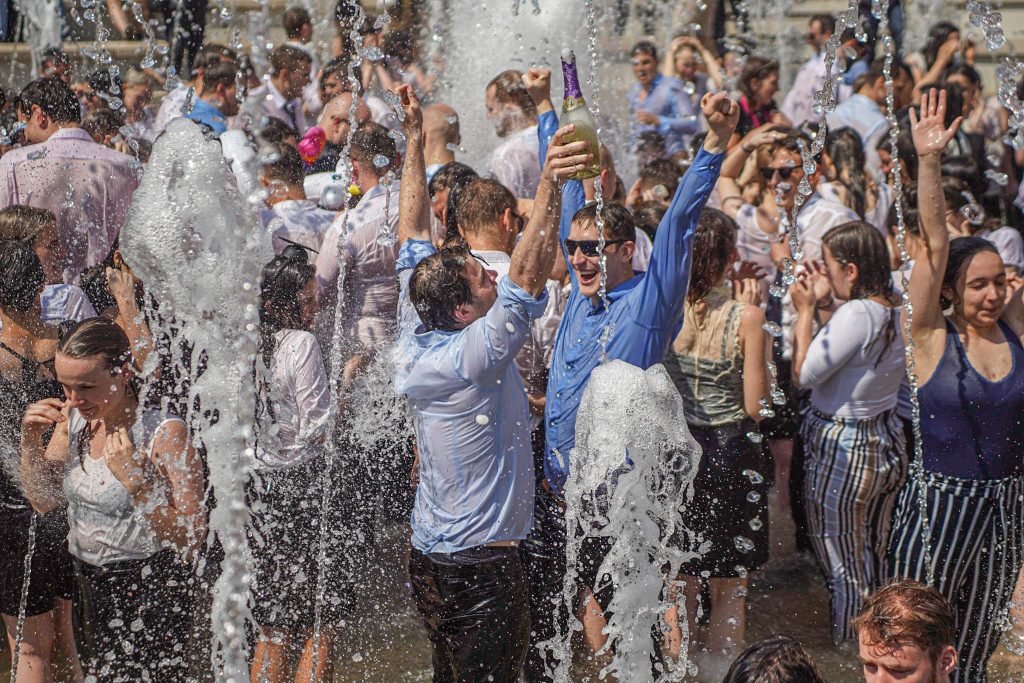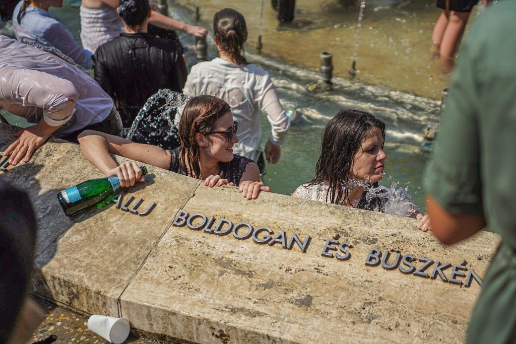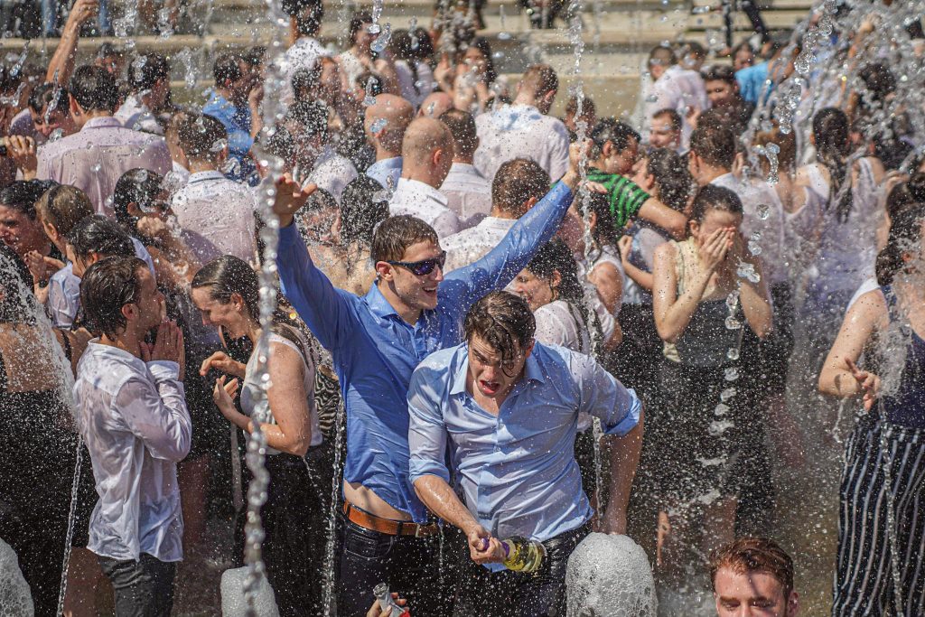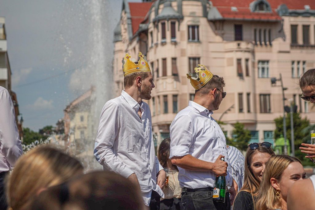 Szeged365 fotóriport: így fürödtek az SZTE frissen végzett orvostanhallgatói a Dugonics téri szökőkútban