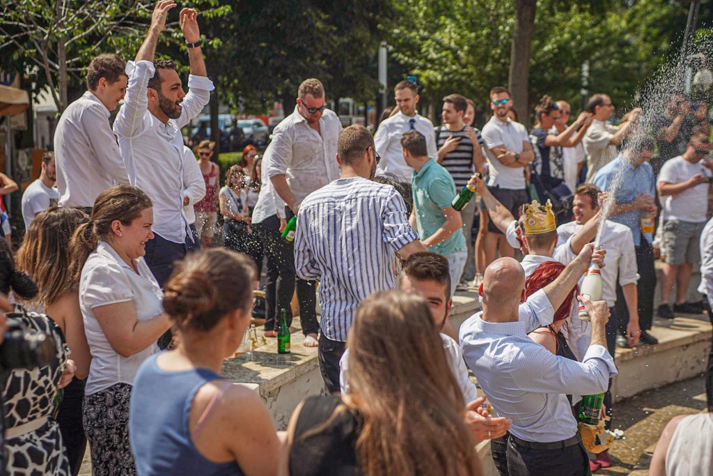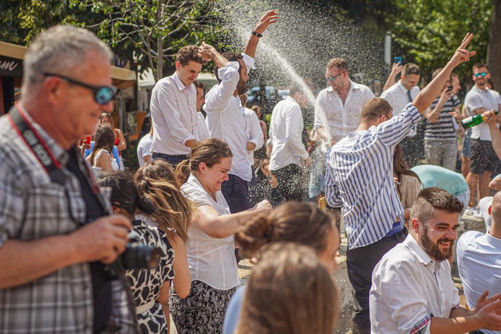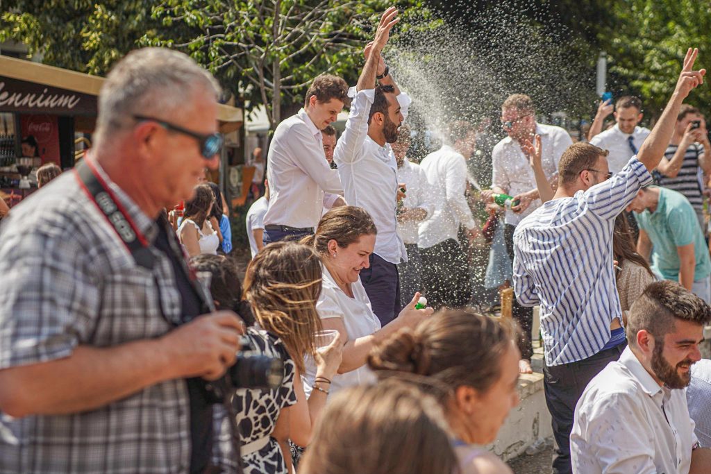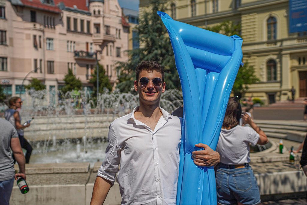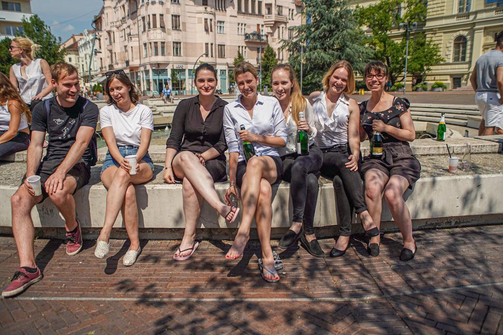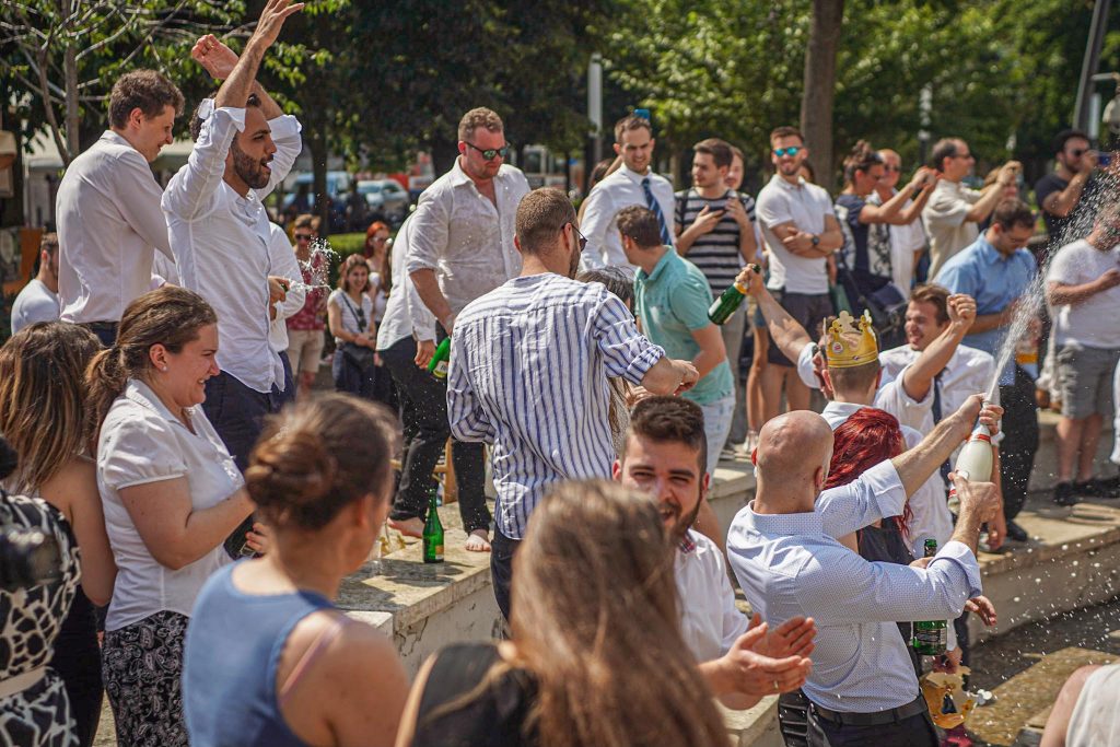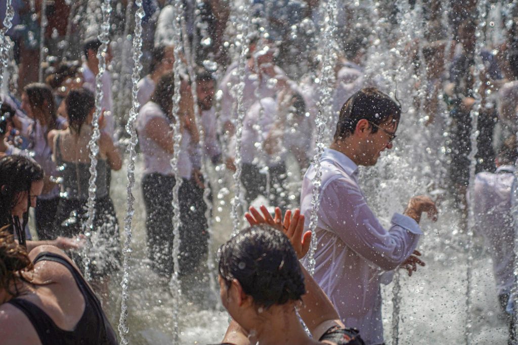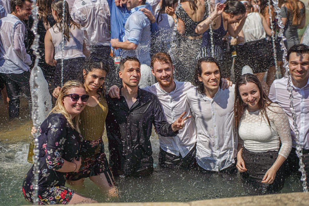 Szeged365 fotóriport: így fürödtek az SZTE frissen végzett orvostanhallgatói a Dugonics téri szökőkútban