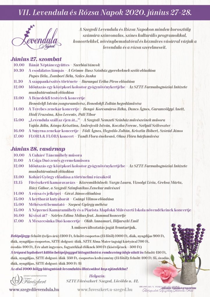 Irány a hetedik alkalommal megrendezett Levendula és Rózsa Napok! Az esemény 9:00-kor startolt, nem maradsz le semmiről, ha most indulsz el, egyrészt mert két napig tart, másrészt mert annyi sok jó program van, hogy elkésni se lehet. Íme: