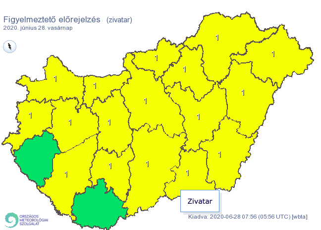 A délelőtt és a kora délután még 100%, hogy patent lesz, azonban a késő délutáni órákban “a Dunától keletre intenzívebb zivatarok is előfordulhatnak rövid idő alatt 20-30 mm csapadékkal, jégesővel, 60-80 km/h-s szélrohamokkal” – írja az OMSZ.