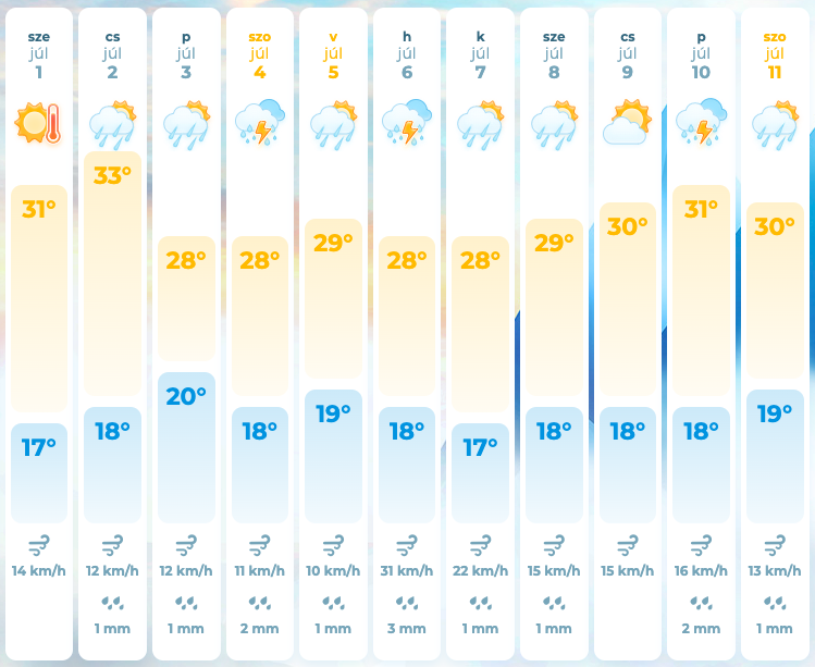 31 fokos csúcshőmérséklettel, erőteljes extra erős UV sugárzással és csapadékmentes időjárással támad a szerda a Napfény Városában, egy valami biztos: fázni nem fogunk! Fronthatás nincs, a napsütéses órák száma 13-15 között lesz az OMSZ előrejelzése alapján.