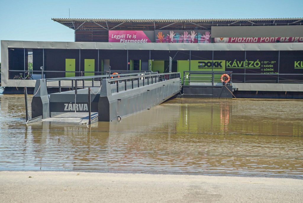 Ha így folytatjuk, igazi vízi paradicsommá válhat a Huszár Mátyás rakpart: a Tisza vízszintje 582 cm, ami azt jelenti, hogy az úttest jelentős részén már a víz az úr. Az áradás a szegedi úszóházak dolgát is megnehezítette, bár ismét látszott, kreativitásért nem kell a szomszédba mennünk.