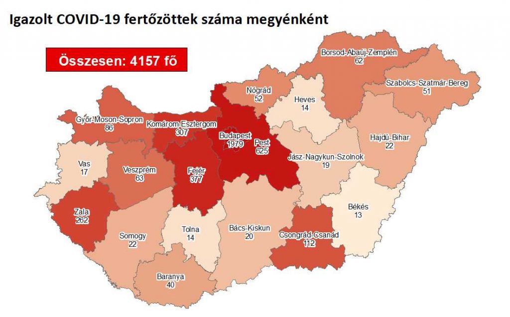 Regisztrált fertőzöttek száma, országosan: 4157 (változás +2) fő
