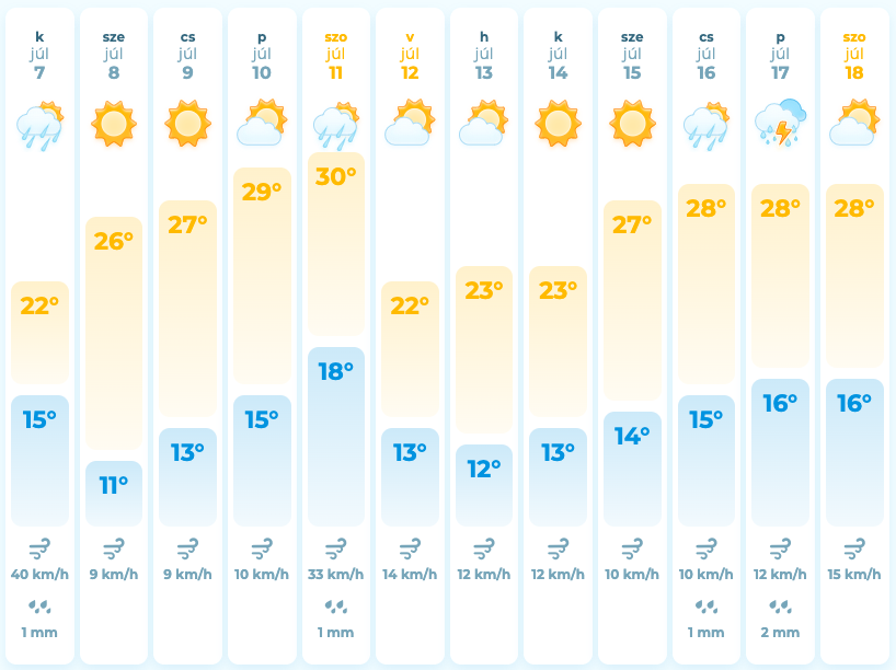 Te is korán keltél? Íme a jutalmad: imádnivalóan friss a ma reggeli levegő Szegeden, köszönhetően a hirtelen lehűlésnek és az éjszakai záporoknak. Mindössze 15-22 fok között lesz ma a hőmérséklet, az eső azonban – ha minden jól megy – kiszemerkéli magát nagyjából délig, a délutánt és a naplementét már egészen tavaszias hangulatban tölthetjük (nyáron). Erőteljes hidegfronti hatás lesz ma, ha egyébként is nyűgös lennél, most végre lesz mire fogni.