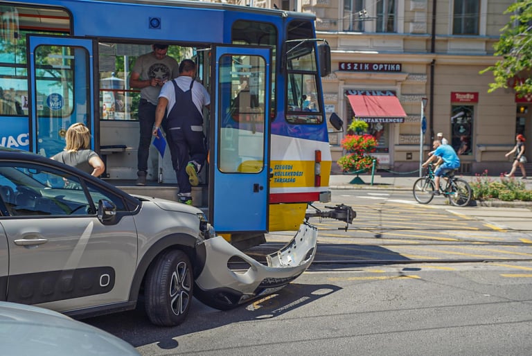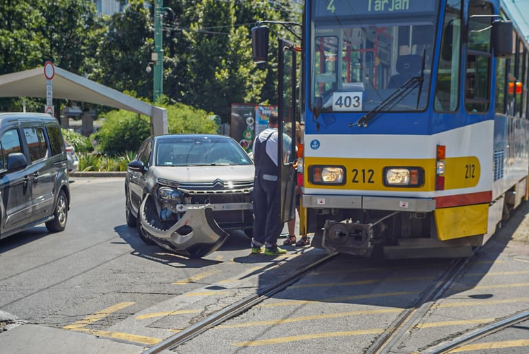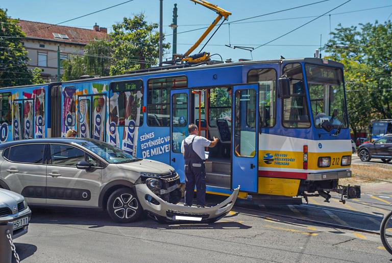 Baleset történt a Dugonics téren. Egy személyautó ütközött a 4-es villamossal, személyi sérülés nem történt, a helyszínelés zajlik.