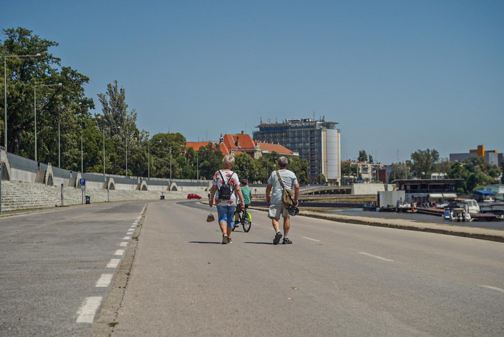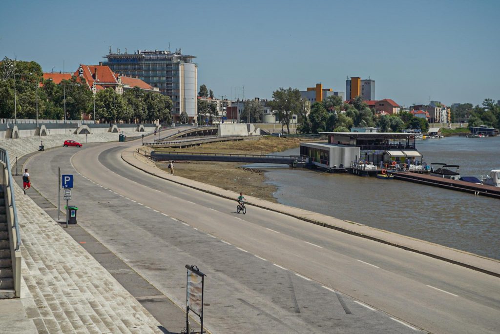 A rakpart lezárás elég tüzes kis vitákat szült a virtuális térben, a fő kérdés az volt, vajon ki a frász fog lemenni sétálni, futni, kosarazni stb. a tűző napon, betonplaccra. Nem foglalunk állást, inkább mutatjuk, hogy festett a sztori szombaton (tehát ma) késő délelőtt… mintha a Legenda Vagyok című film valamelyik jelenetét néznénk, Will Smith és zombi-mentesen.