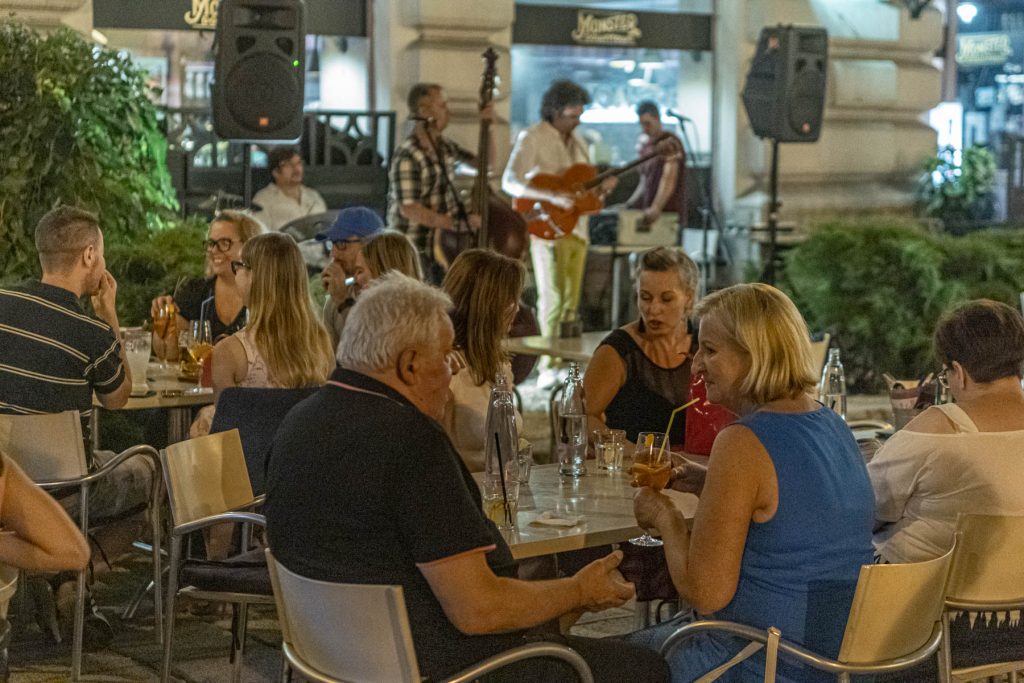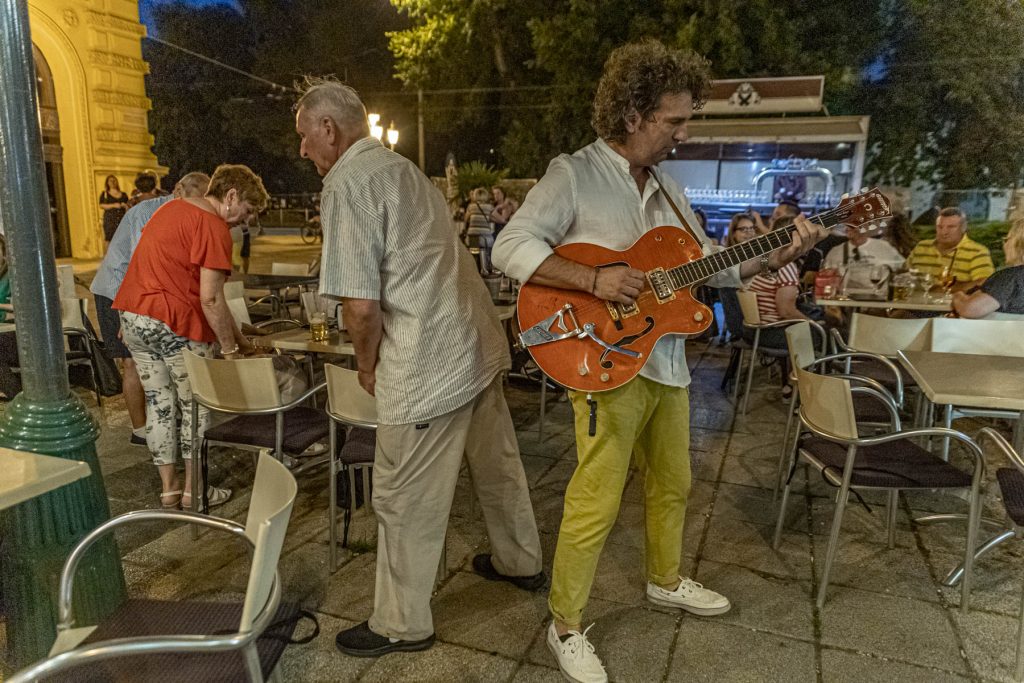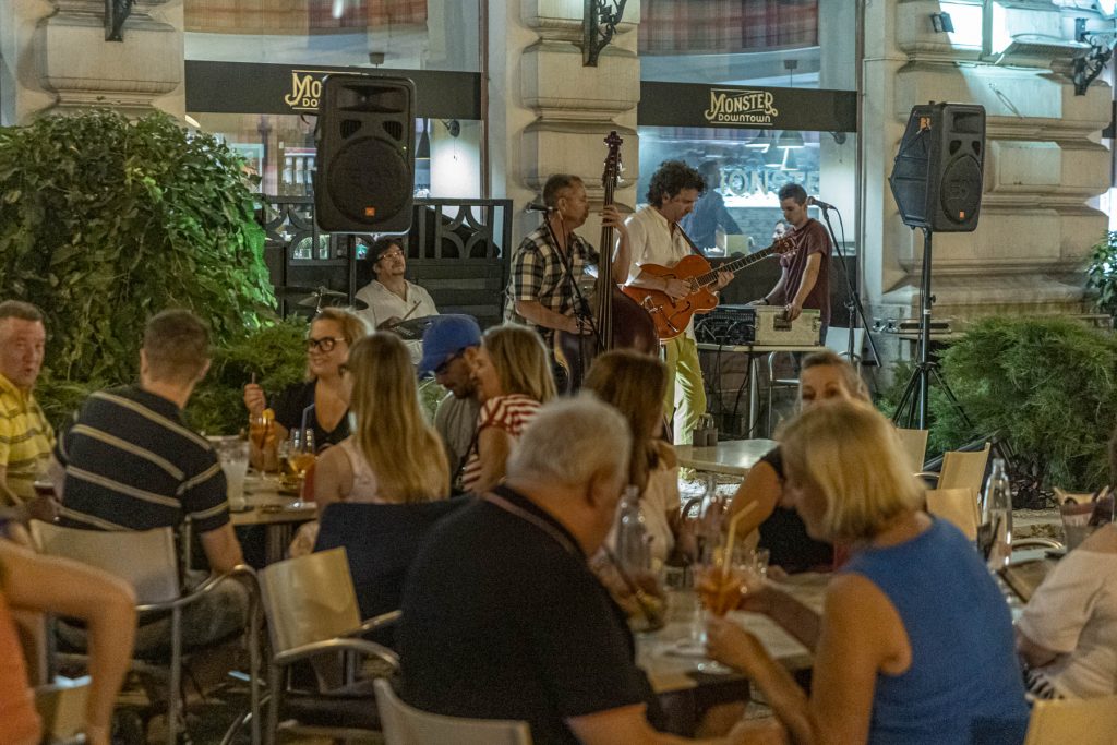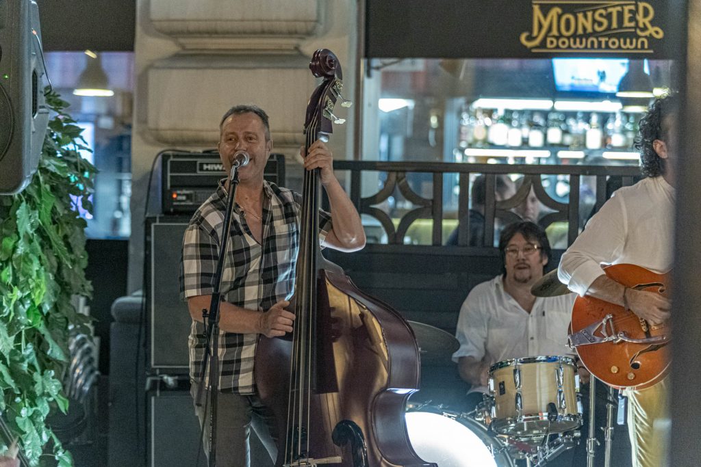 • élő zene (ez péntek este a Pumpkins Trio volt, a szegedi rockabilly együttes)