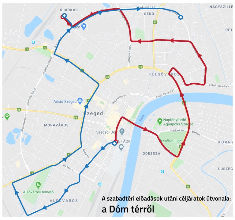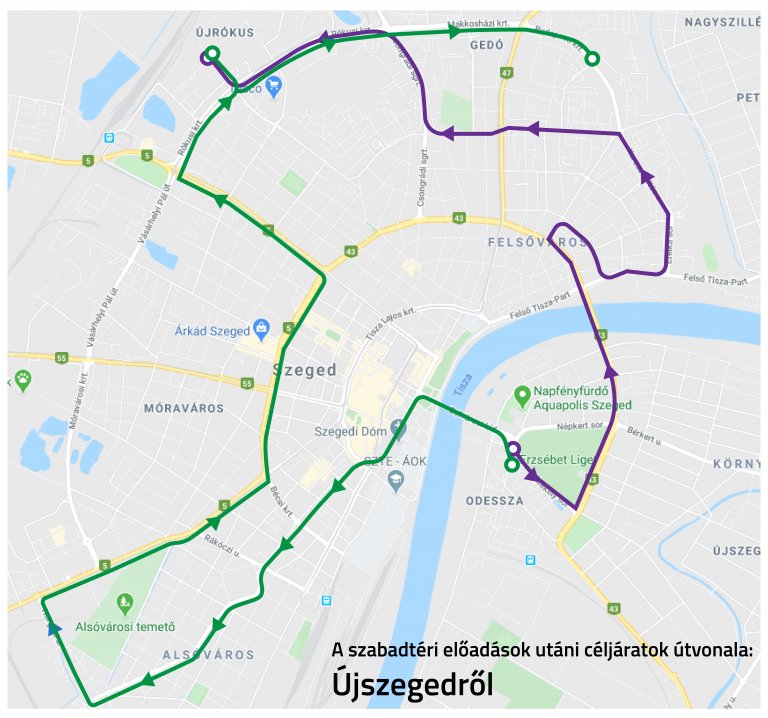 Céljáratokat indít az SZKT a Szegedi Szabadtéri Játékok előadásai után, amellyel a közönség mind a Dóm térről, mind pedig az Újszegedi Szabadtéri Színpadtól könnyebben juthat haza.