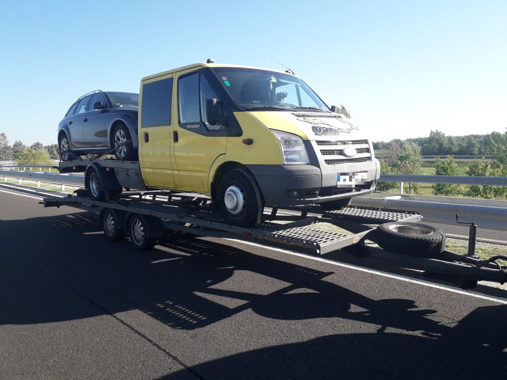A bolgár sofőr július 11-én akadt horogra. Azért állították meg, mert úgy szállított egy kisteherautót, hogy annak platóján egy másik személyautó volt rögzítve. A járművezetővel szemben a rendőrök helyszíni bírságot szabtak ki és intézkedtek a balesetveszélyes állapot megszüntetéséről.
