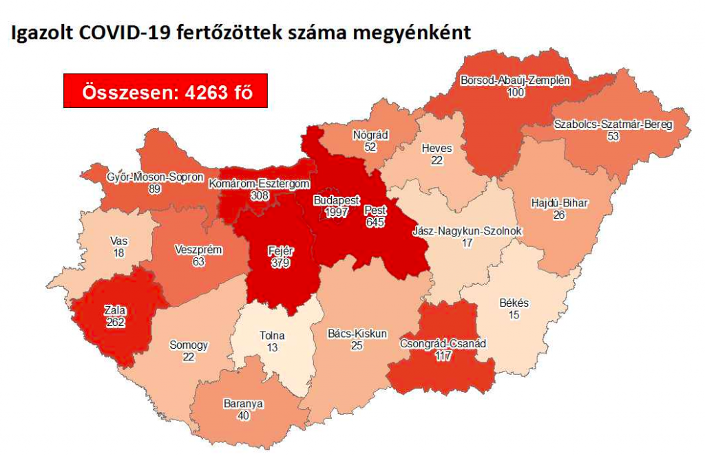 Mindössze 5 fővel emelkedett a beazonosított fertőzöttek száma, azonban ebből egy személy Csongrád-Csanád megyei. Ezzel 4263 főre nőtt a hazánkban beazonosított fertőzöttek száma (aktív: 541), nincs újabb elhunyt, az eddigi áldozatok száma 595 fő, 3126-an pedig már meggyógyultak. Mutatjuk a friss, szerda reggeli számokat.