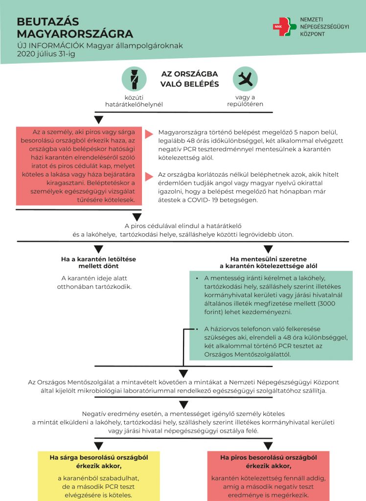 A beutazási korlátozások a sárga és a piros besorolású országokból hazaérkezőket érintik: a határon belépőket szúrópróbaszerűen (közúton és repülőtéren is) egészségügyileg szűrik, testhőmérséklet-mérést végeznek náluk és kérdőívet kell kitölteniük, valamint hatósági házi karanténra kötelesek.