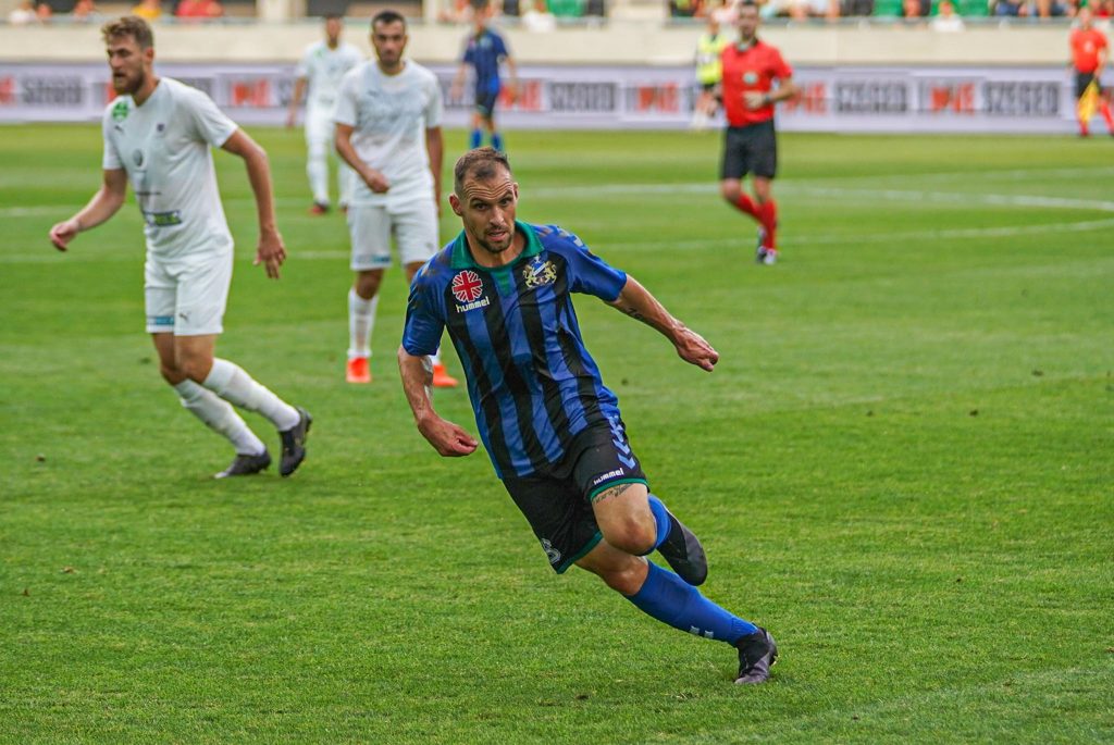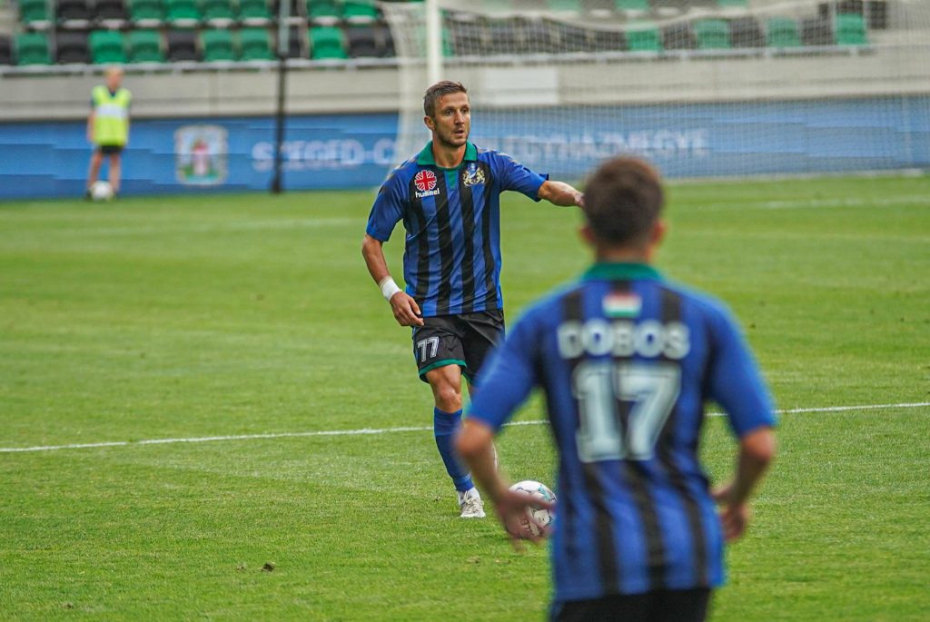 Egyáltalán nem látszott az osztálykülönbség a folytatásban sem: a 18’-ben Dobos szöglete után Tóth Gábor fejelt közelről, itt már bravúr kellett Pajovictól, hogy szögletre tornázza a labdát és a következő sarokrúgásnál Haruna veszélyeztetett, de megúszták a lilák ezeket a nehéz perceket. A félidő közepén az előző szezonban már megszokott fantasztikus szegedi szurkolás zengett a Szent Gellért Fórumban: a két lelátórész felelgetett egymásnak, és zúgott a „Hajrá, Szeged!” Még nem telt el 30 perc, amikor Dobos Áron lövésénél védett ismét a fővárosi kapus, aki csapat legjobbja volt az első félidőben. Pontosan fél órát kapott Simon Ádám, akit Germán Tamás váltott az utolsó negyedórára a szünet előtt.