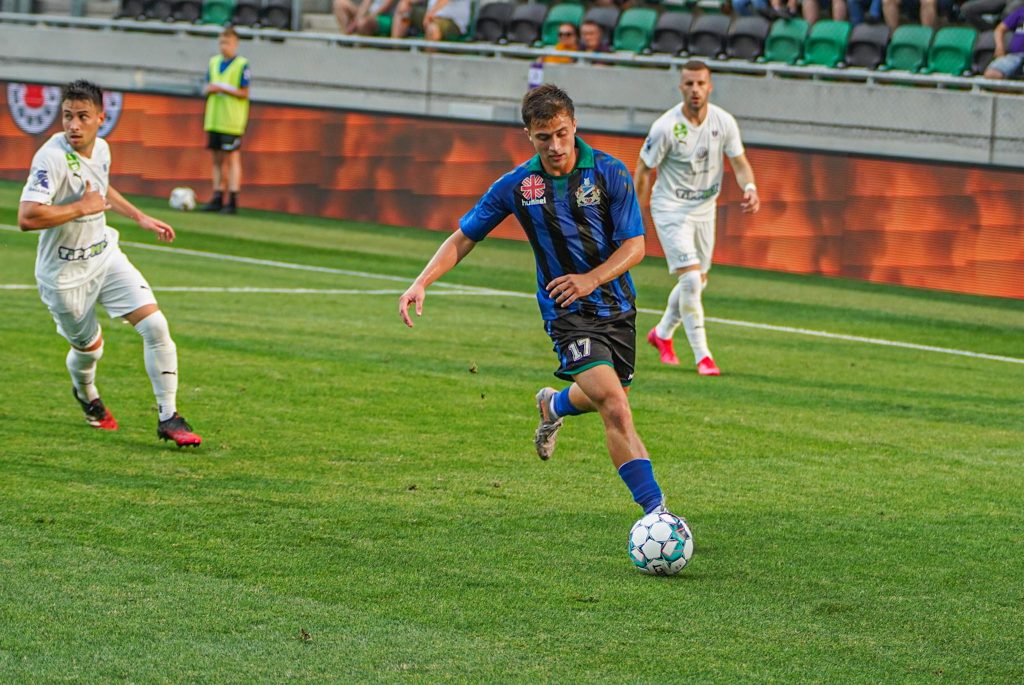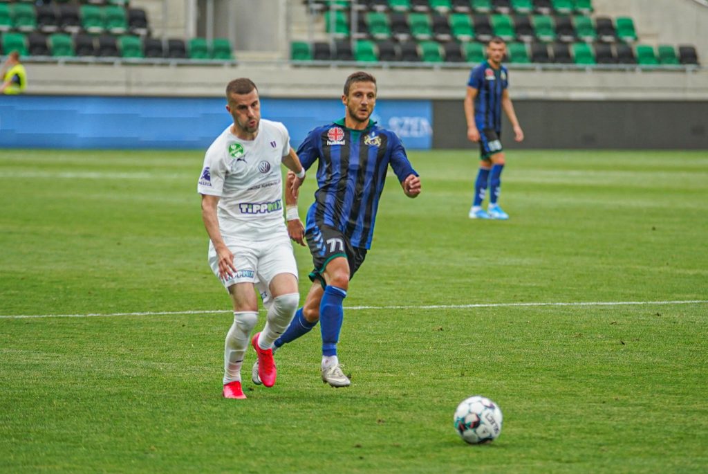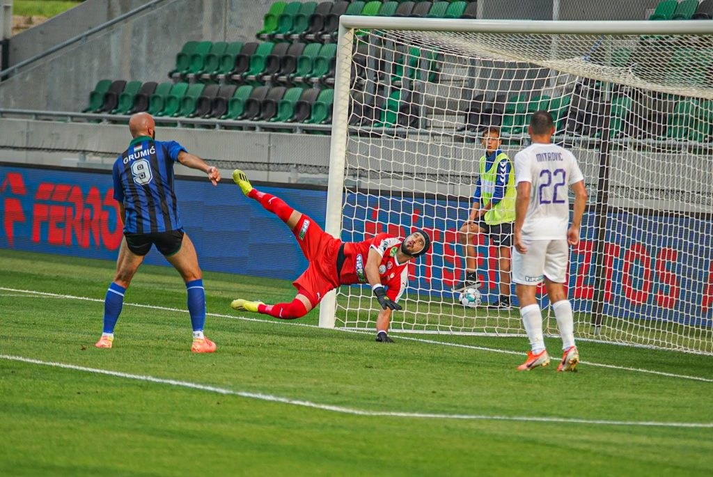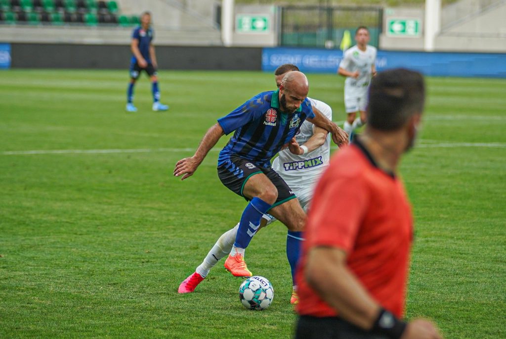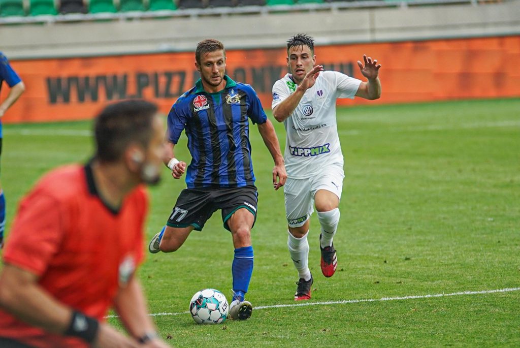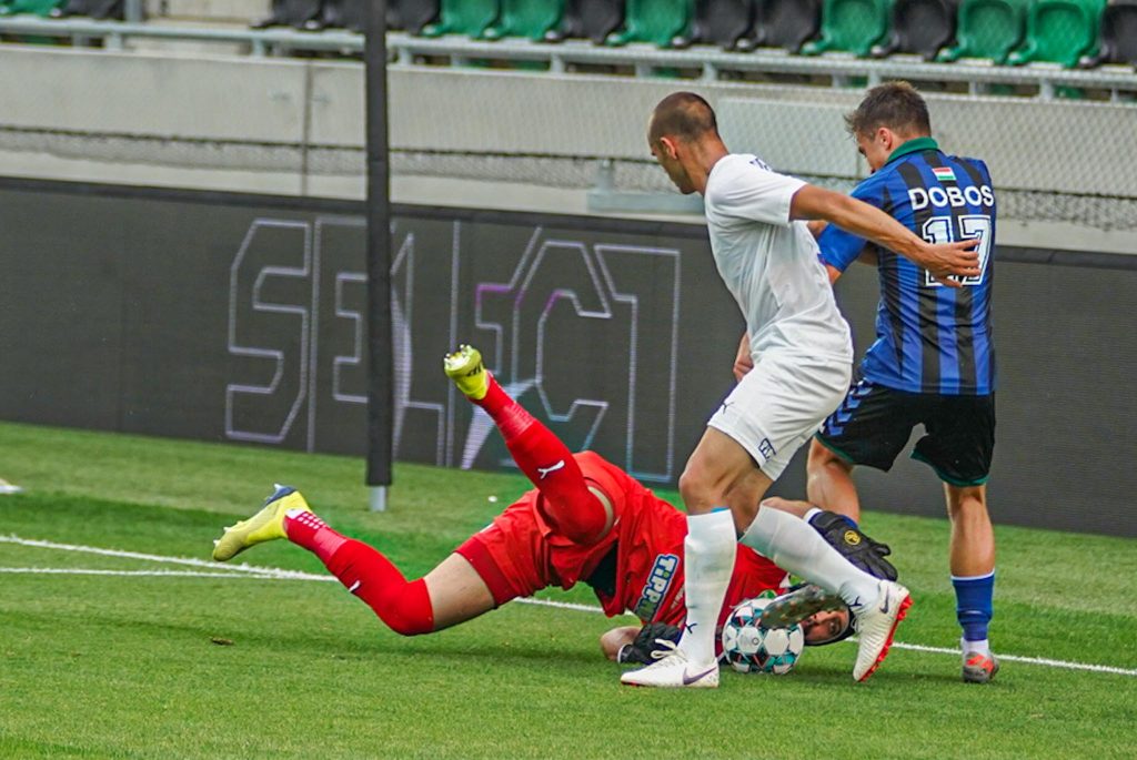 Grumic, Dobos és Jovanovic vitte el gyönyörű kispasszos játékkal a labdát a jobb szélen, középen érkezett Haruna, de nem sikerült feltennie a pontot az i-re, maradt a 0:0. Egészen a 38. percig, amikor egy védelmi hibát bosszult meg a húszszoros bajnok, Rácz Barnabás vette be Takács kapuját, 0:1. A félidő hajrájában még Grumic lőtt mellé, majd Takács védett, de az eredmény már nem változott.