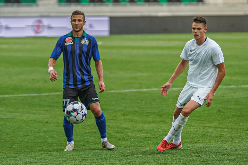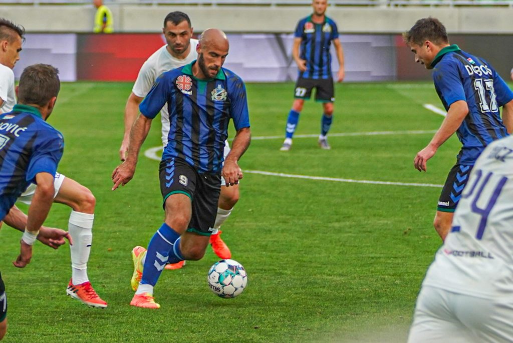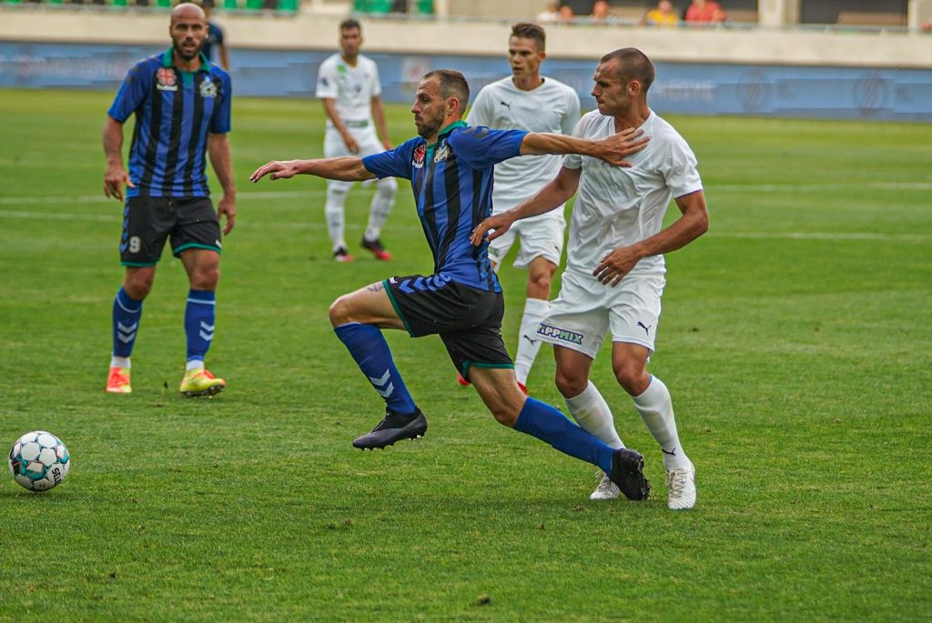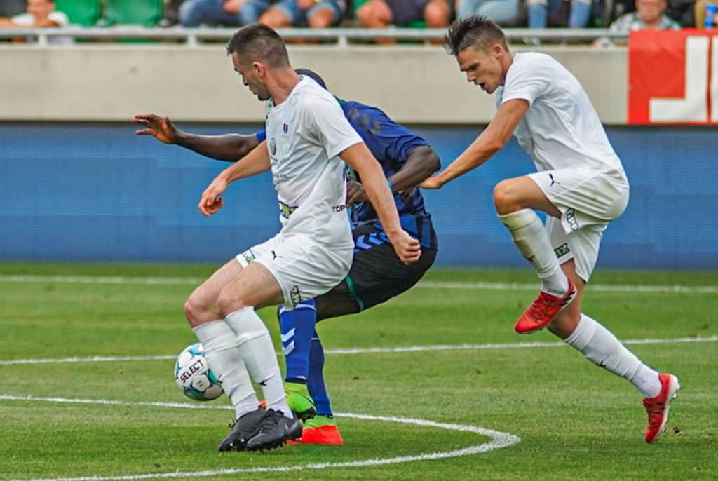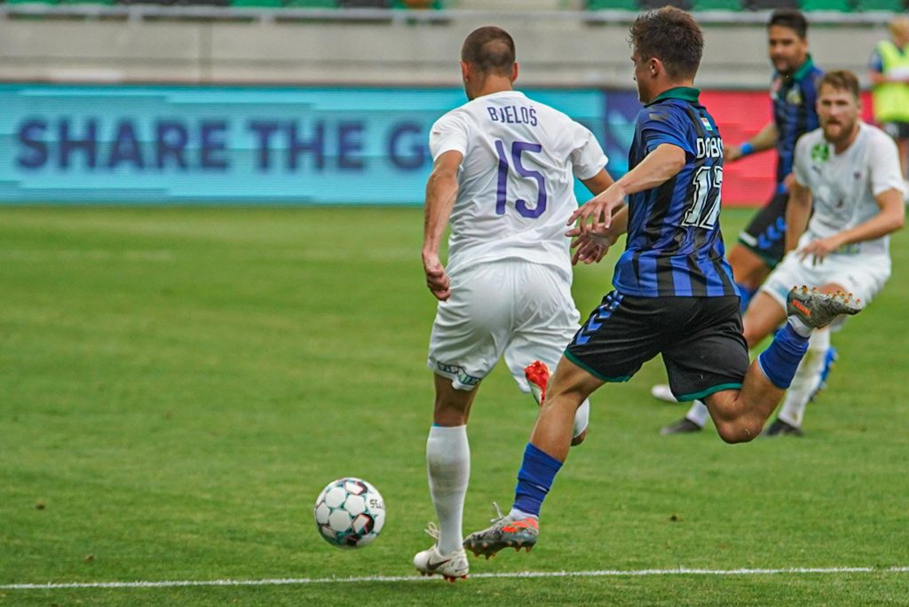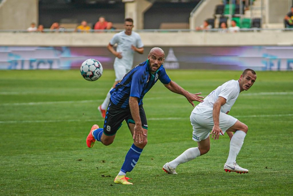 Grumic, Dobos és Jovanovic vitte el gyönyörű kispasszos játékkal a labdát a jobb szélen, középen érkezett Haruna, de nem sikerült feltennie a pontot az i-re, maradt a 0:0. Egészen a 38. percig, amikor egy védelmi hibát bosszult meg a húszszoros bajnok, Rácz Barnabás vette be Takács kapuját, 0:1. A félidő hajrájában még Grumic lőtt mellé, majd Takács védett, de az eredmény már nem változott.