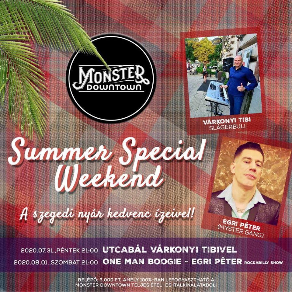 - 2020. július 31., péntek 21:00: Monster Downtown utcabál Várkonyi Tibivel