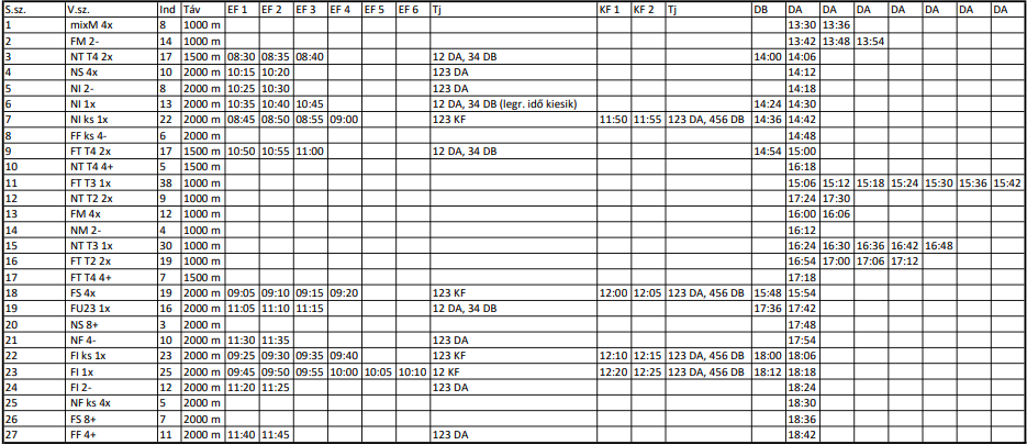 Aki korán kel, aranyat lel: 8.30-kor már indulnak is a programok, a kétpárevezősök előfutamával kezdődik a nap, itt a szegedi Szabó Blanka Napsugár – Boldogh Lilla páros száll csónakba a Szegedi Vízisport Egyesülettől, a Csongrádi Vízügyi Sport Egyesülettől pedig Mucsi Boglárka és Györgyi Stella száll vízre.