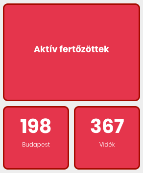 Az aktív fertőzöttek száma 565. Az aktív fertőzöttek 35 százaléka, az elhunytak 60 százaléka, a gyógyultak 45 százaléka budapesti. Hetvenhárom koronavírusos beteget ápolnak kórházban, közülük hatan vannak lélegeztetőgépen. Az oldal adatai szerint 7782-en vannak hatósági házi karanténban. A mintavételek száma 342 887.