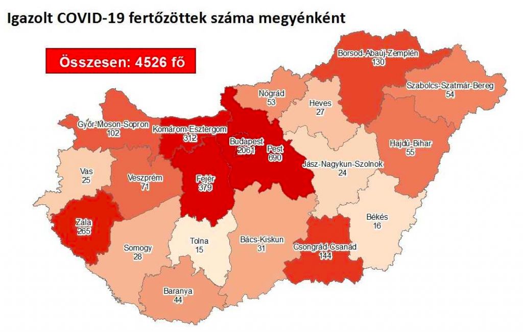 Regisztrált fertőzöttek száma, országosan: 4526 (változás +21) fő
