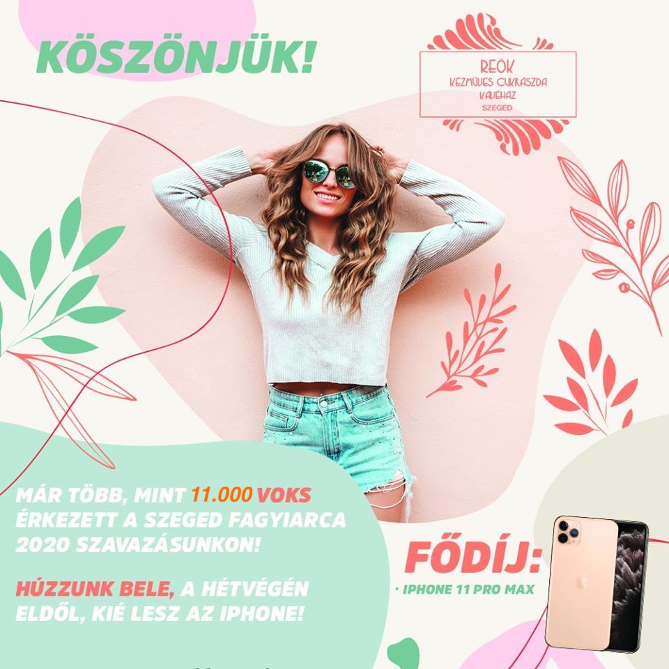 A fináléjába ért a szegedi REÖK és DELIMO Kézműves Cukrászdák által meghirdetett “Az Év Szegedi Fagyiarca 2020” választás, melynek keretein belül a cukrászdák vendégei dönthetik el, ki legyen az, akinek a főszereplésével bemutatják azok nyár végi fagyi-csodáit, illetve az, aki megnyeri a voksolás fődíját, az iPhone 11 Pro Max-ot.