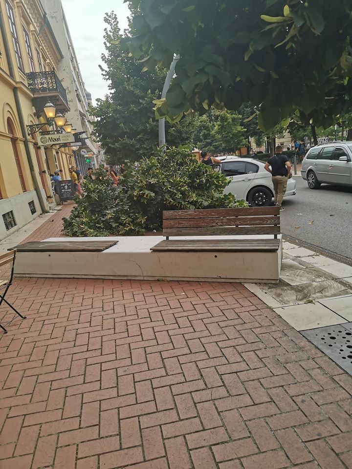 KI.: A feleségem beugrott a Prézlibe (street food étterem a Dugonics téren), én pedig leültem az ominózus padra, hogy megvárjam. Na jó, igazából nem is pad ez, hanem egy hatalmas betontömb, amire le lehet ülni. Ezt rakta arrébb az autós, aki valószínűleg nem 30-cal érkezett a körforgalom felől. A durva, hogy nem is láttam, hogy jön, az olvasói beszámolóitokkal ellentétben nem volt időm félreugrani, a becsapódás pillanatában a padon ültem, vele együtt pördültem. Az egyik pillanatban azt éreztem, hogy “repülünk”, a következőben már láttam, hogy a kocsi letarolta a betonpad másik felét. Én a bal oldalon ültem, az autó a jobb oldalt trafálta telibe.