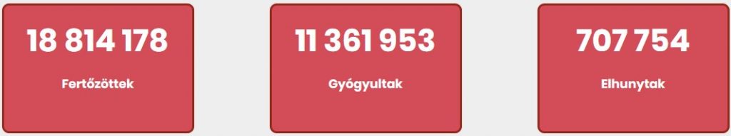 Átlépte a 700 ezret a koronavírus halálos áldozatainak száma. A világon 18 752 917 ember fertőződött meg a koronavírus-járványban, a halálos áldozatok száma 706 761, a gyógyultaké pedig 11 308 298 a baltimore-i Johns Hopkins Egyetem közép-európai idő szerint csütörtök reggeli adatai szerint. Egy nappal korábban 18 480 000 fertőzöttet tartottak nyilván, a halálos áldozatok száma 699 575, a gyógyultaké pedig 11 083 012 volt. A fertőzés 188 országban és régióban van jelen.
