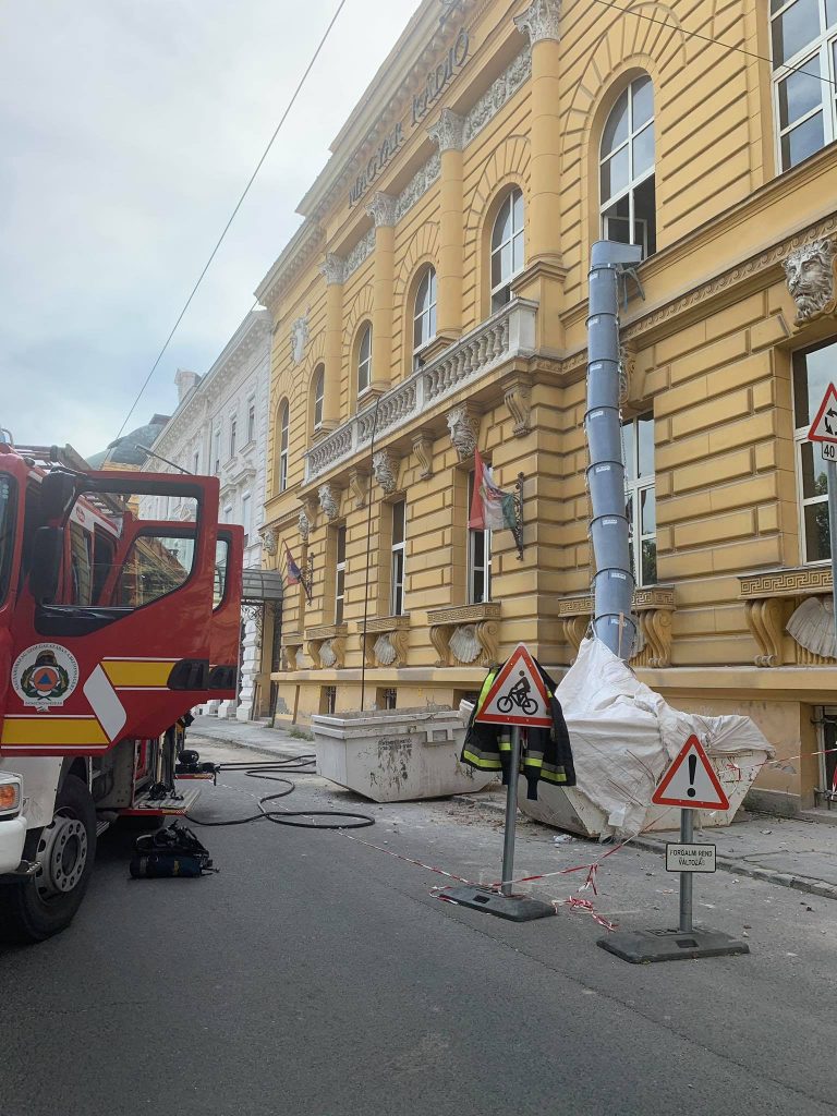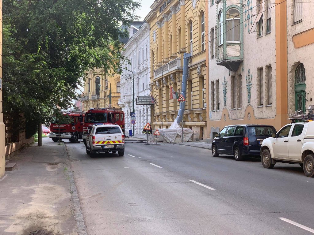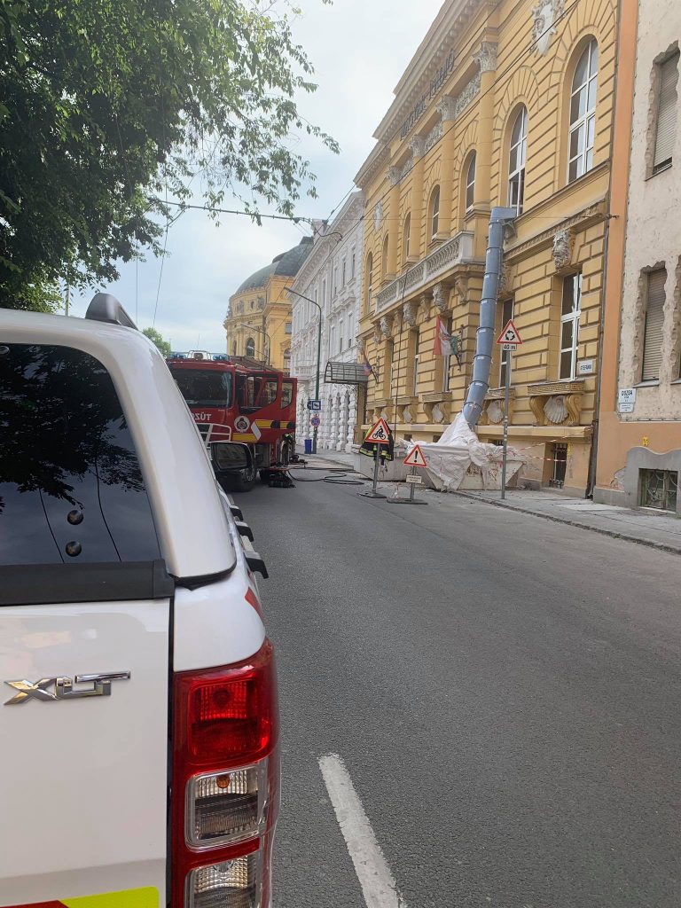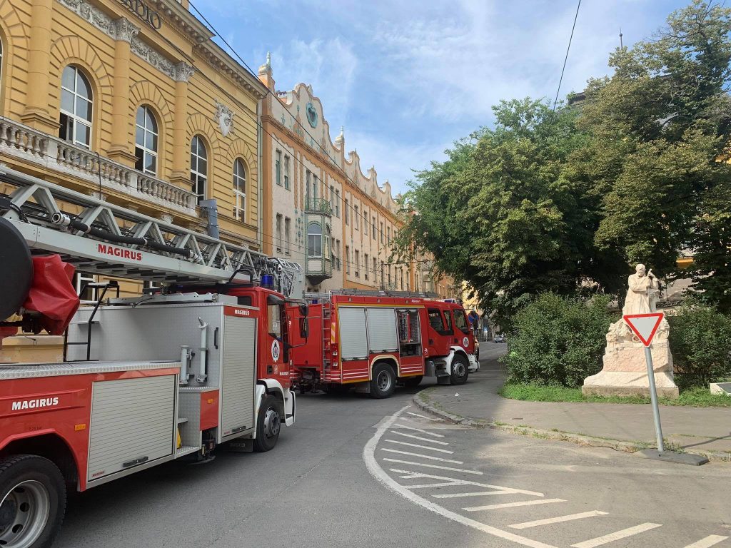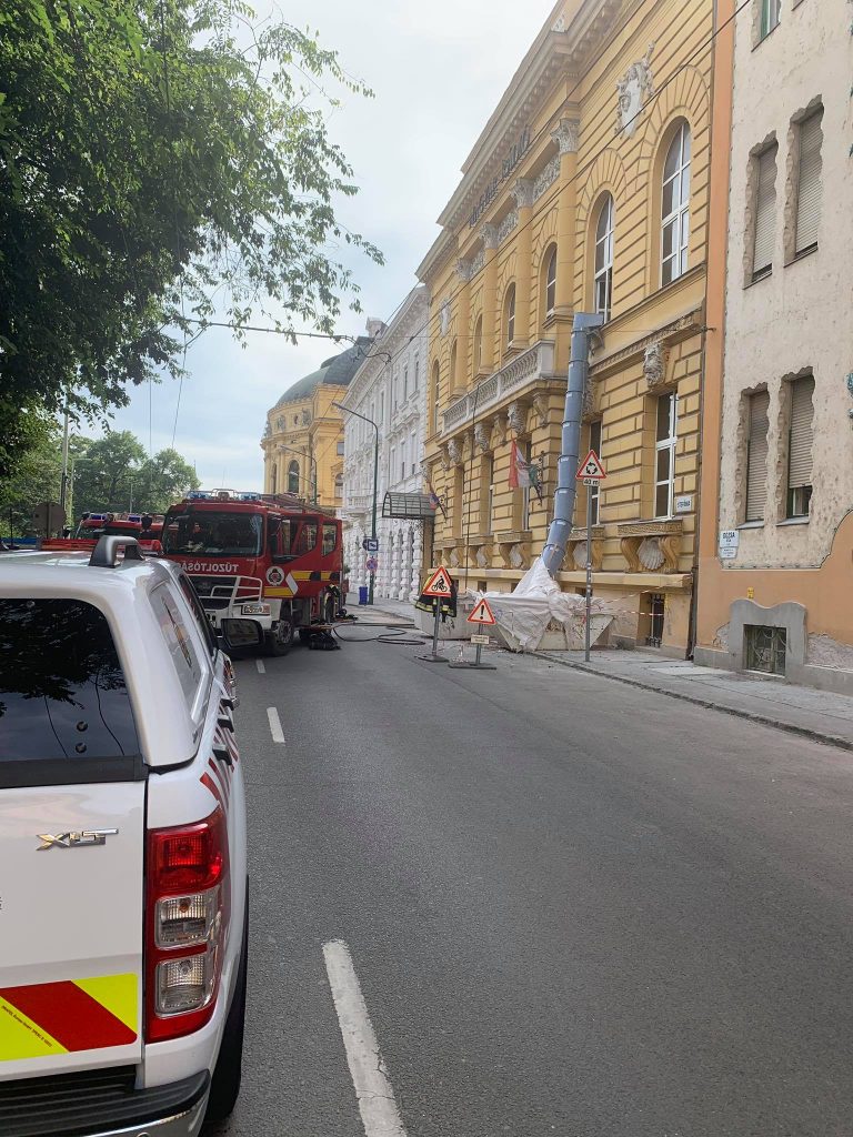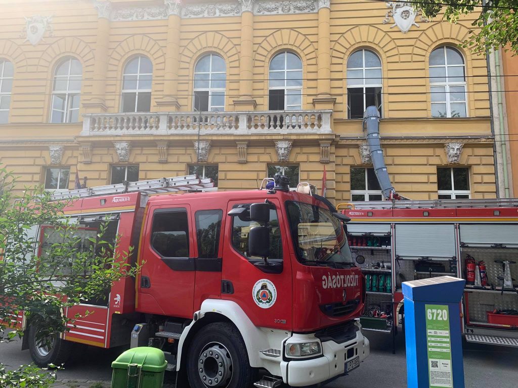 A rádió egykori épületén épp a tetőszerkezeten dolgoztak, amikor a tető nád aljzata annyira felizzott, hogy füstölni kezdett. A tűzoltók két sugárral dolgoztak az eseten, a munkálatok a cikk megírásának pillanatában is tartanak – kerüld el a Dózsa György utcát!