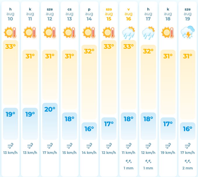 Tombol a nyár, marad a hardcore kánikula Szegeden. Hétfőn a reggeli órákban 19, a délutáni csúcsban 33 fok várható, csapadék és felhősödés mentesen. A strandidő egészen jövő vasárnapig kitart majd.