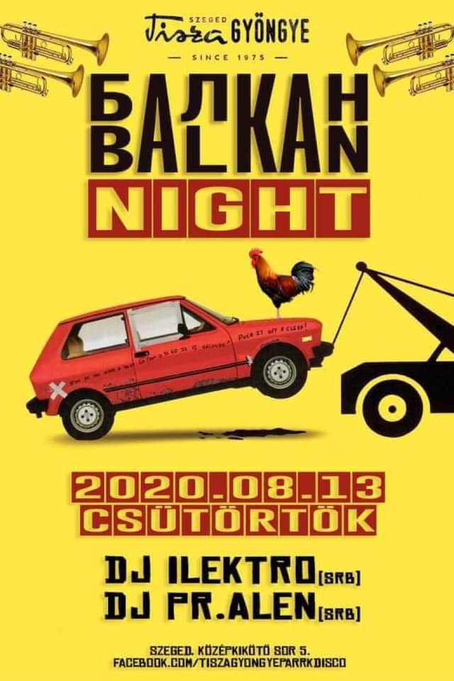 Fergeteges Balkán bulival vár ma 23:00 órától a Tisza Gyöngye. A ropogós zenéért Vajdaság közismert lemezlovasai DJ PR. ALEN és DJ ILEKTRO gondoskodnak.