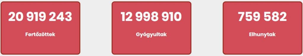 Egy nappal korábban még 20 553 702 fertőzöttet tartottak nyilván, a halálos áldozatok száma 748 416, a gyógyultaké pedig 12 770 518 volt. A fertőzés 188 országban és régióban van jelen.