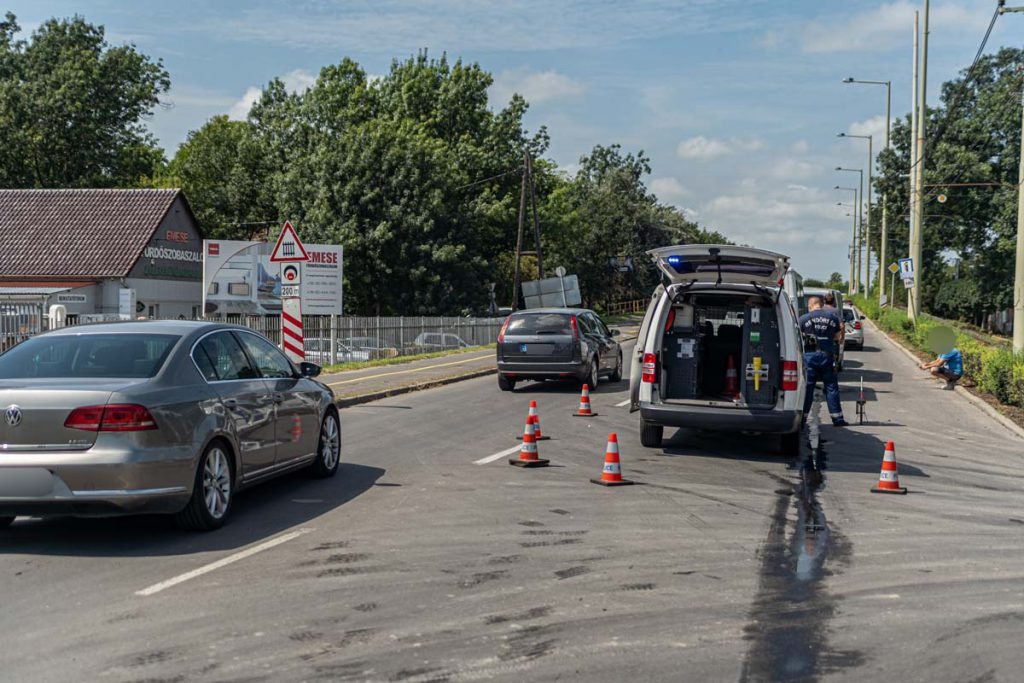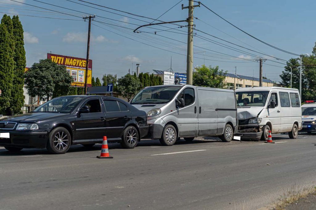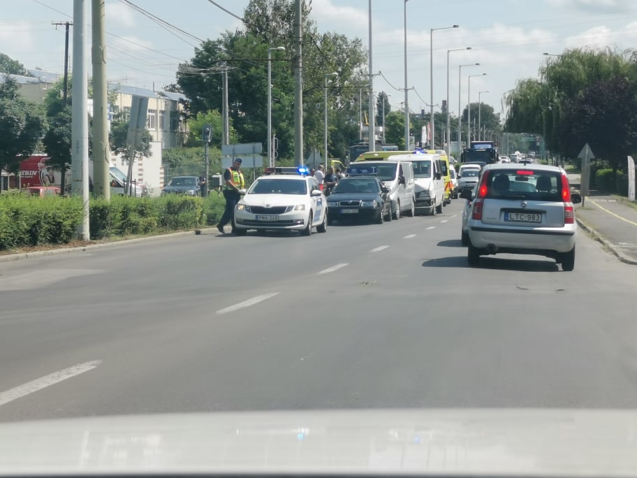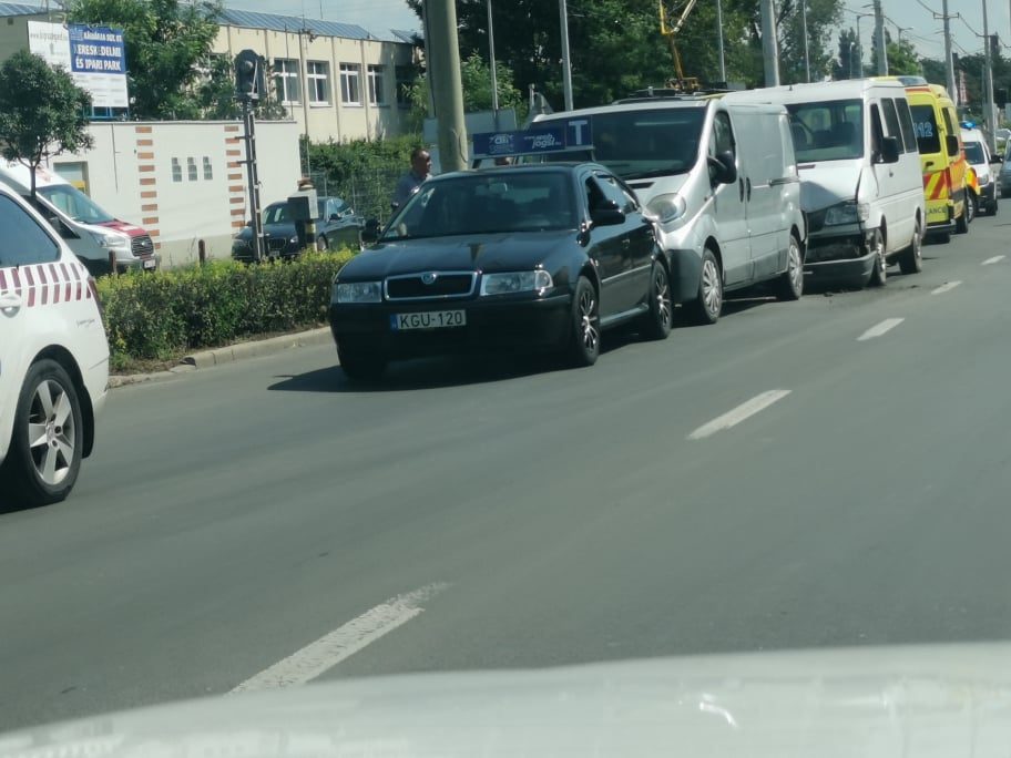 Két kisbusz és egy személykocsi ütközött a Kálvária sugárúton az ipari parknál, nem sokkal 12 óra előtt. Első ránézésre utoléréses vagy ráfutásos baleset történhetett, a gépjárművek egy sávot elfoglalnak, és pillanatok alatt hatalmas torlódás alakult ki a szakaszon.