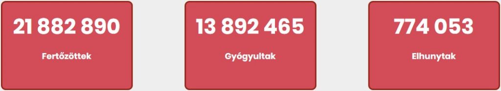 Egy nappal korábban még 21 613 706 fertőzöttet tartottak nyilván, a halálos áldozatok száma 774 296, a gyógyultaké pedig 13 616 495 volt. A fertőzés 188 országban és régióban van jelen.