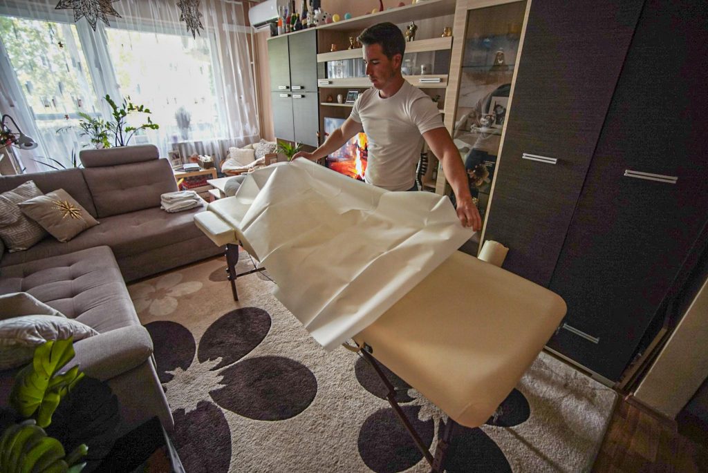 Bármennyire is jó azonban a technika, kellő ellazulással sokkal jobb hatásfokkal dolgozhatnak a masszőrök. Éppen ezért döntött úgy Budai Gábor, hogy a legjobb, ha saját lakásukban kezeli ügyfeleit.