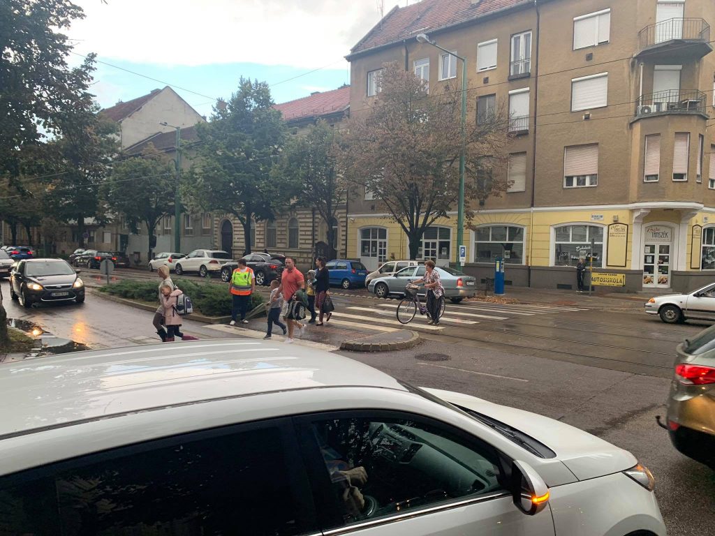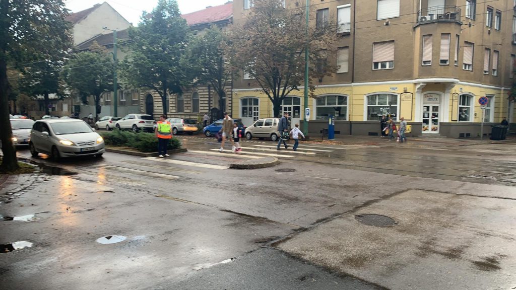 Az iskolák közelében a már megszokott módon egyenruhások segítenek a suliba igyekvőknek.