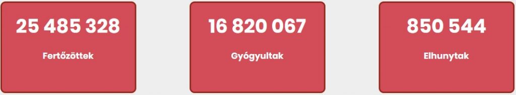 Egy nappal korábban 25 143 428 fertőzöttet tartottak nyilván, a halálos áldozatok száma 845 414, a gyógyultaké pedig 16 557 295 volt. A fertőzés 188 országban és régióban van jelen.