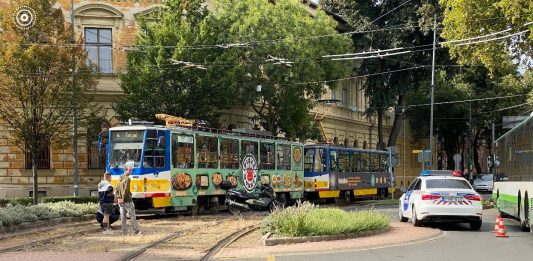 Villamos és motoros ütközött a Dugonics téri körforgalomban
