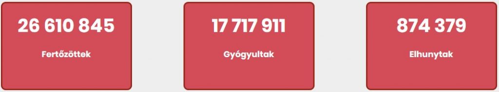Már 26 522 393 ember fertőződött meg világszerte a koronavírus-járványban, a halálos áldozatok száma 873 270, a gyógyultaké pedig 17 638 272 a baltimore-i Johns Hopkins Egyetem szombati összesítése szerint.
