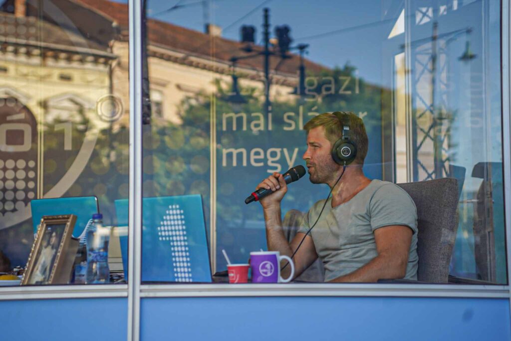 Sok szegedivel összhangban fotóriporterünk, Szabó Dávid is a Magyar Ede téren kezdte a napot, ahol a népszerű rádiósok, Sebestyén Balázs, Rákóczi Feri és Vadon Jani élőben tolták a reggeli műsort. Balázsék a Reök cukrászda jóvoltából reggeliztek is egyet Szegeden, és megosztották a hallgatósággal azt a sztorit is, hogy nem sikerült átjutnia a Tiszán Vadon Janinak, amikor az óföldeáki templomot kereste.
