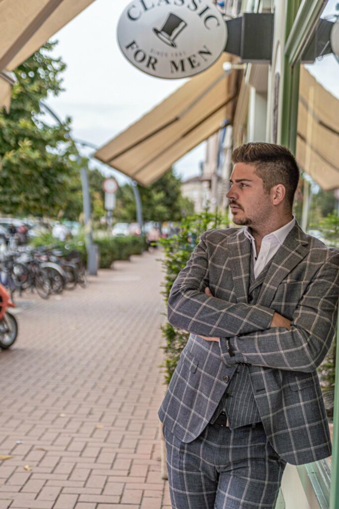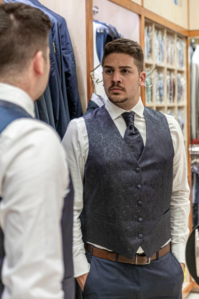 “Korábban szinte kőbe volt vésve, hogy egy esküvőn bármilyen öltönyt vett fel a férfi, a menyasszonyi ruha színe alapján öltözött alá a férj, így az ekrü vagy fehér mellények hódítottak. Ma már olyan irányzatok vannak, amelyek teljesen szembemennek ezzel a szokással, nem meglepő választás egy sötét árnyalat, és ugyanez igaz az újasszony táncnál is, ahol a piros már nem az ing színében, hanem egy-egy kiegészítőben jelenik meg” – avatott be a divat változásaiba Orosz Szabolcs, a Classic Férfi Divat tulajdonosa, üzletvezetője.